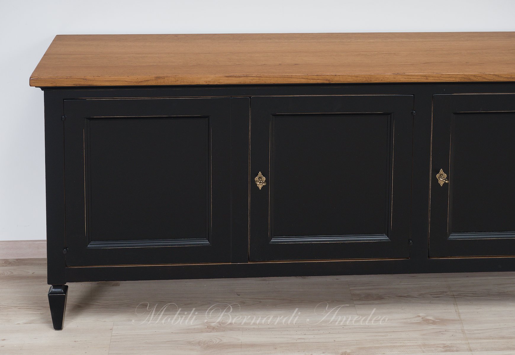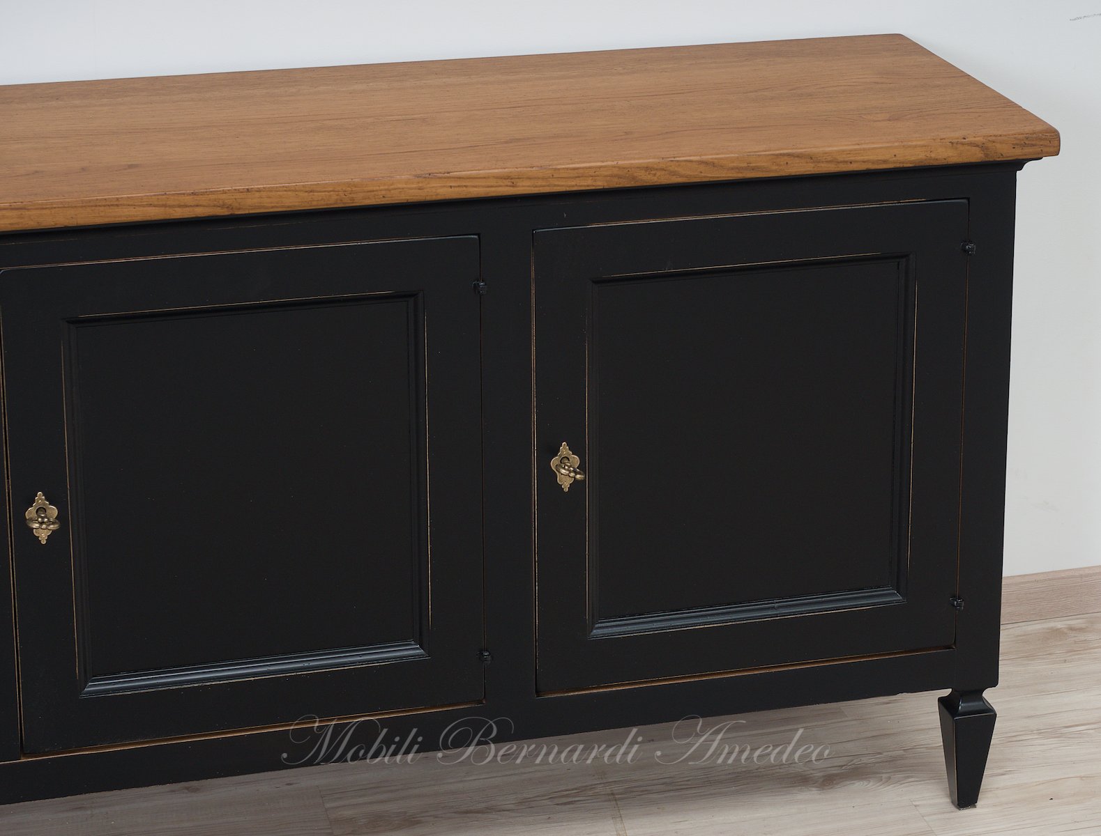Credenze in tiglio o altro legno massello, laccate-dipinte con o senza decori. Colori e decori personalizzabili.